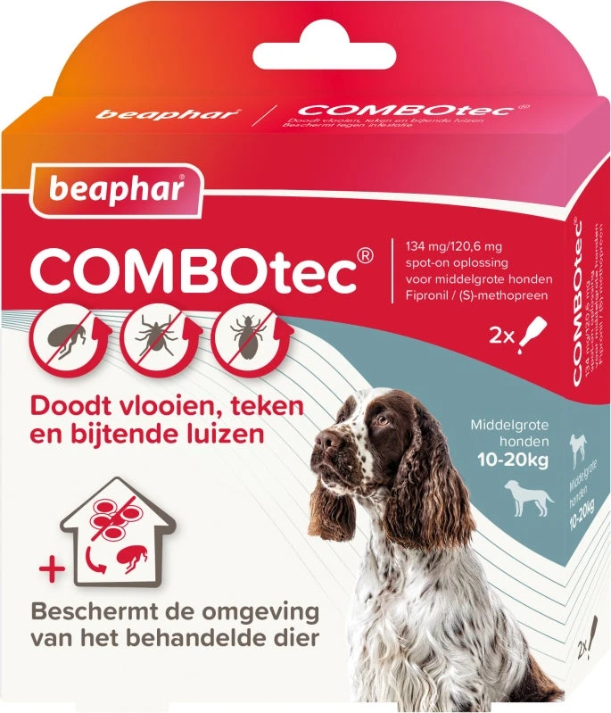 Beaphar COMBOtec hond 10-20kg bevat een combinatie van Fipronil en de insecten groeiregulator (S)-Methopreen. Hierdoor is een vlooienplaag sneller onder controle. COMBOtec doodt vlooien gedurende 8 weken én voorkomt gedurende die periode nieuwe vlooien in de omgeving door de ontwikkeling van eieren, larven en poppen tegen te gaan.