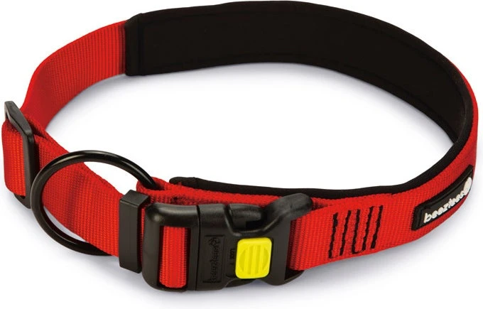 De rode halsband is ook nog voorzien van een ‘slot’, zodat de kliksluiting niet ongewenst open kan gaan. De Parinca is een wat bredere halsband, wat het een stoere en sportieve uitstraling geeft.