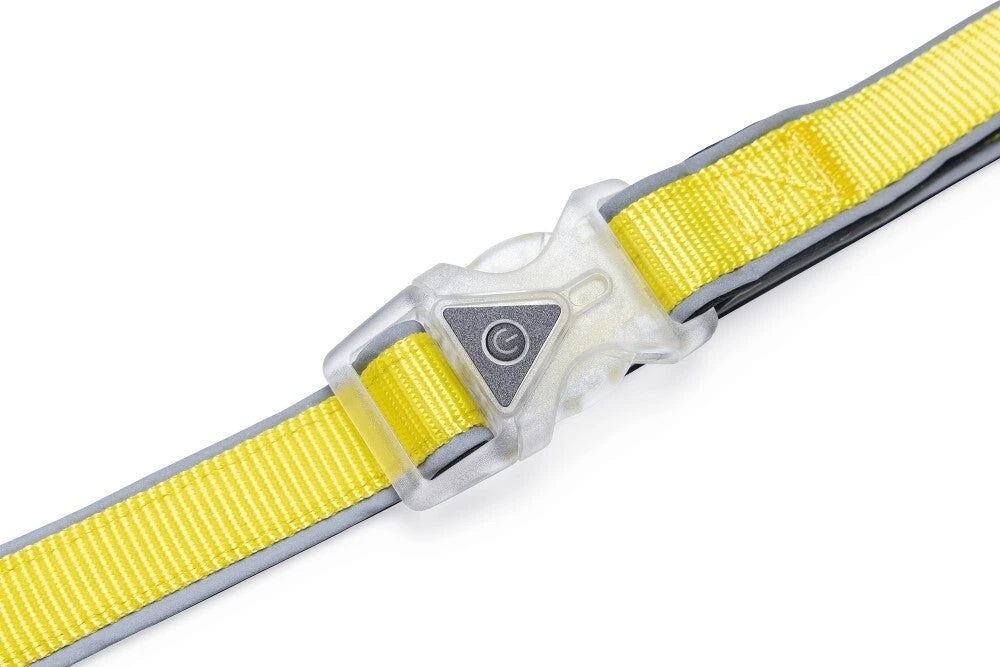 De Beeztees Safety Gear Parinca Premium Looplijn is een fijne hondenriem om mee te gaan wandelen. Deze hondenriem bevat aan de binnenkant neopreen, neopreen is een weerbestendig materiaal. Hierdoor zal de hondenlijn snel drogen en vuil weren. Bovendien is het neopreen ook doorgevoerd aan de binnenzijde van het handvat. Hierdoor ligt deze een stuk comfortabeler in de hand en zal de hondenriem niet in je handen snijden. Deze hondenriem is ook geschikt voor de donkere dagen! Dit omdat de hondenlijn reflecterend is en er in de waterproof kliksluiting LED verlichting verwerkt zit. De verlichting werkt op batterij en is in te stellen op 3 verschillende standen: langzaam knipperen, knipperen en snel knipperen. Rood, groen en blauw licht zit in de verlichting verwerkt. Door toevoeging van de kliksluiting kan je de riem verstellen. Zo bepaal jij zelf hoeveel bewegingsvrijheid jij jouw hond wil geven. De Safety Gear Premium Looplijn Parinca is perfect te combineren met de bijpassende premium Parinca hondenhalsbanden.