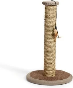Een zeer fraai uitziende krabpaal, genaamd Rofra. Deze krabpaal heeft een solide ronde bodemplaat waarvan de oppervlakte bestaat uit stevige stof. De paal is vervaardigd van zeegras wat een natuurproduct is. Inclusief een veertje aan een elastiek voor extra speelplezier. Een aanwinst voor elk interieur.