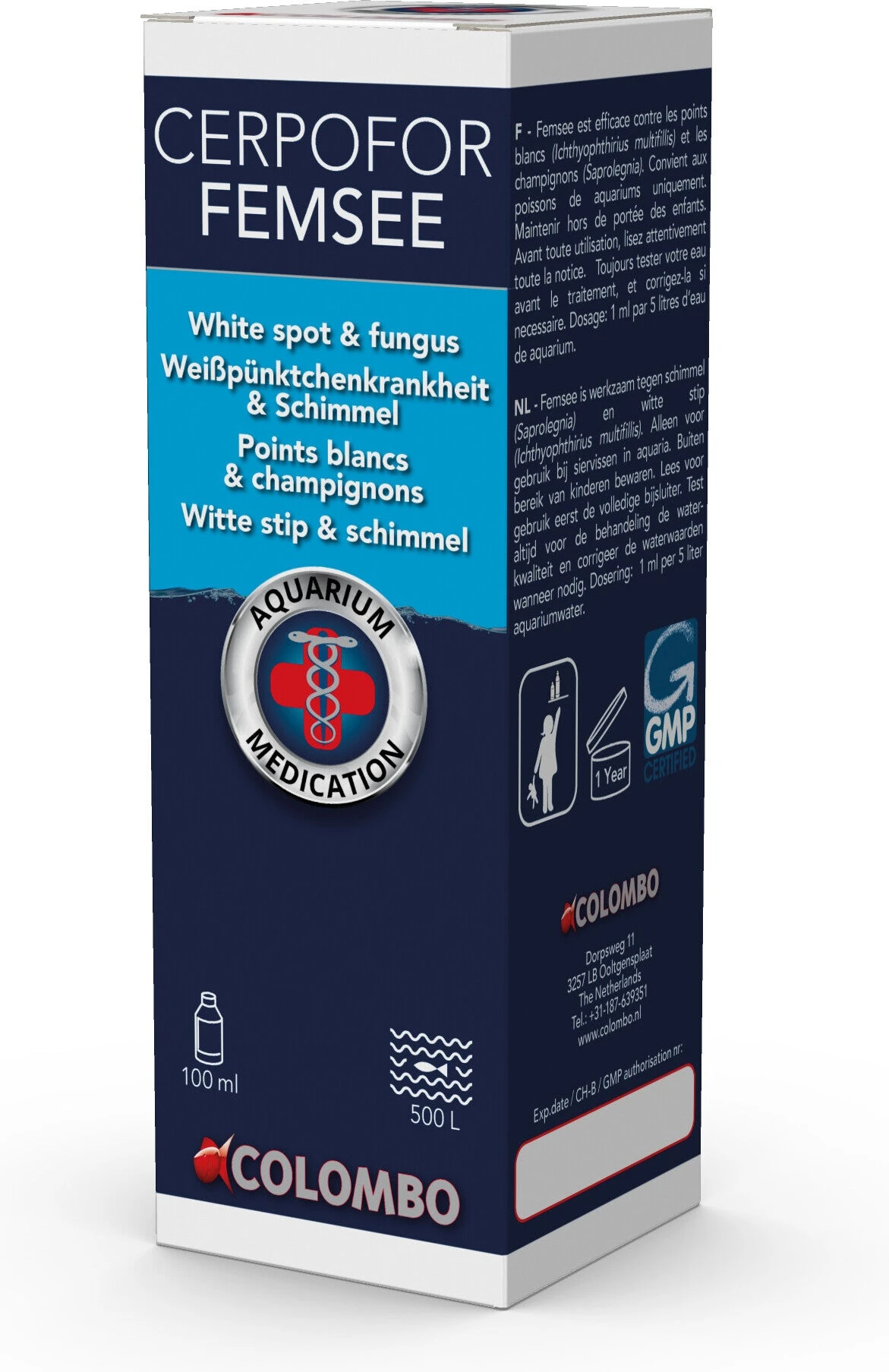 Femsee is werkzaam tegen schimmel en witte stip. Witte Stip is te herkennen aan kleine witte stippen op kop en lichaam. Schimmel ziet eruit als witte tot groene watachtige plukken.
