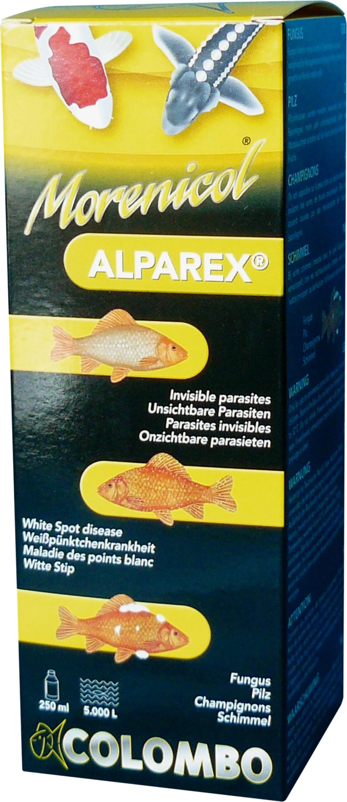 Alparex is werkzaam tegen onzichtbare parasieten welke een grauwsluier op de vissen veroorzaken, zoals Ichtyobodo, Chilodinella en Trichodina. Bovendien worden witte stip en schimmel effectief behandeld.