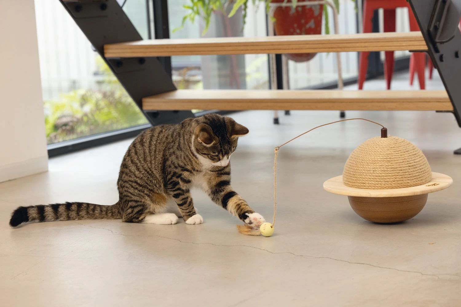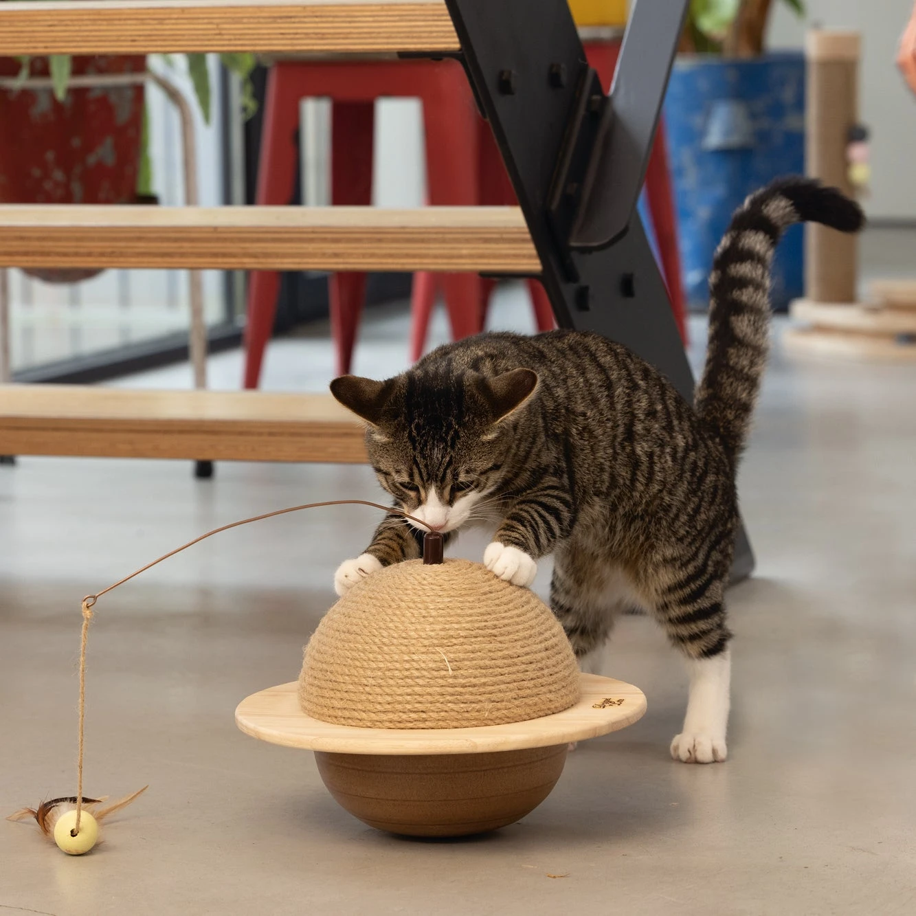 De Designed by Lotte Krabbol Wiggly is een echt design item voor in je huis, waaraan jouw kat veel krabplezier kan beleven! Wiggly is gemaakt van rubberhout, wat mooi lichtcremig van kleur is. De bal is afgewerkt met jute touw. Jouw kat zal het leuk vinden om met het speelveertje te spelen of aan de bal te krabben. Een extra speelelement wordt vanzelf toegevoegd zodra jouw kat gaat spelen, want dan zal de bal zal heen en weer wiebelen. Met deze krabbol doe je niet alleen jouw kat een plezier, maar het staat ook echt fantastisch in je interieur! – Gemaakt van rubberhout – Bal is afgewerkt met jute touw. Afmetingen: 29,5×29,5×20 cm