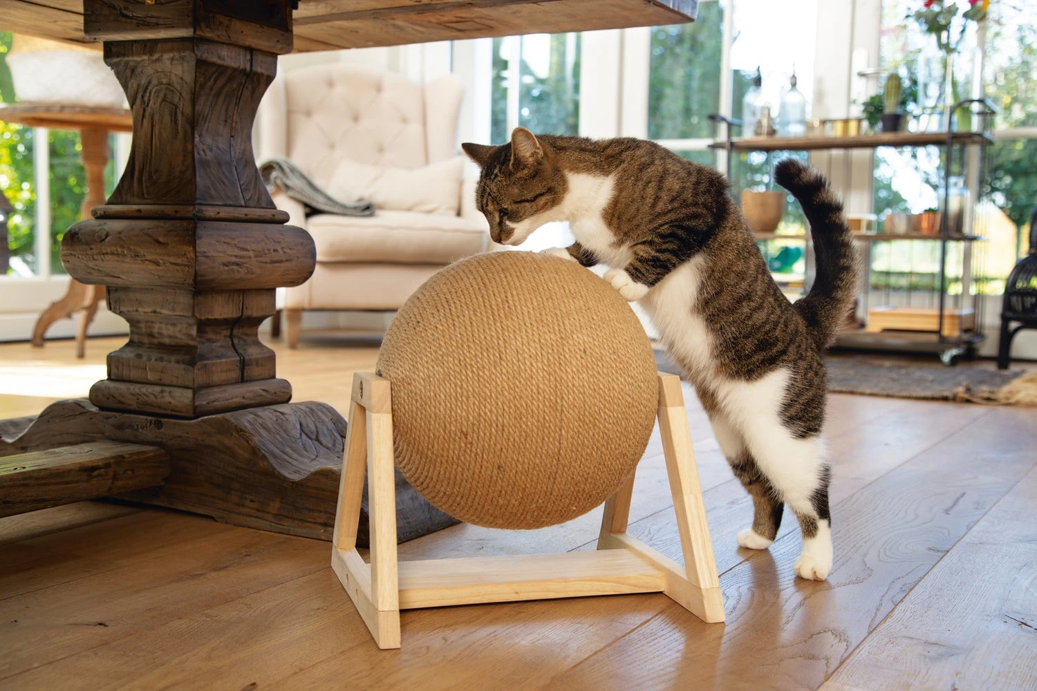 De Designed by Lotte Krabbol Balty was natuurlijk al een groot succes! Het leuke is dat deze krabbol Xem op voet daar perfect bij past. Deze grote krabbol ziet er super mooi uit en biedt voldoende ruimte voor jouw kat om te krabben. De krabbol kan niet ronddraaien, want de bal zit vast. Naast dat het een leuke krabbol is voor jouw kat, staat het ook nog eens mooi in huis. – Jute touw – Houten voet – Inclusief beschermingsvoetjes voor het hout Afmetingen: 34x30x35,5 cm