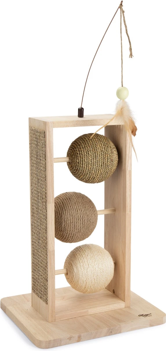 Daarnaast bevat iedere bal een eigen soort touw: jute, sisal of zeegras. Er hangt een leuke hengel met een speelveertje aan, voor extra speelplezier! Met deze krabbollen doe je niet alleen jouw kat een plezier, maar het staat ook echt fantastisch in je interieur!