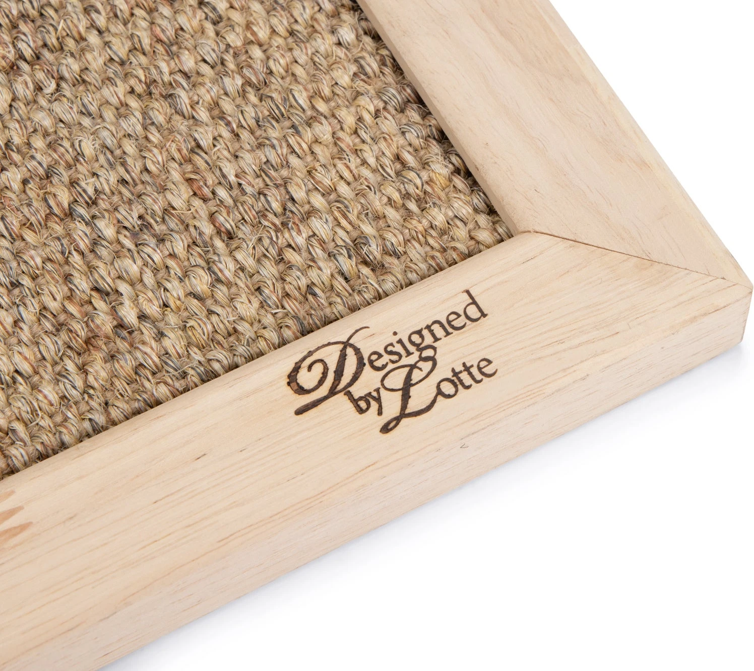 De Designed by Lotte Krabplank Poezels is een echte design krabplank. Het heeft namelijk meer weg van een schilderij, dan van een krabplank. Poezels is gemaakt van een sisal mat en omlijst met rubberhout. Het rubberhout is mooi lichtcremig van kleur, wat het mooi maakt in ieder interieur.