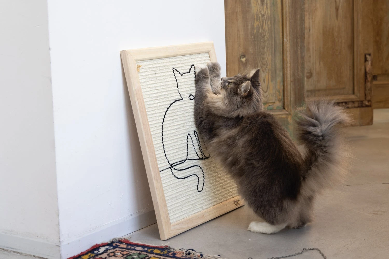 De Designed by Lotte Krabplank Sammy is een echte design krabplank. Het heeft namelijk meer weg van een schilderij, dan van een krabplank. Sammy is gemaakt van een sisal mat en omlijst met rubberhout. Het rubberhout is mooi lichtcremig van kleur, wat het mooi maakt in ieder interieur. In het schilderij staat een kat afgebeeld, wat het ook leuk maakt om in huis neer te zetten. Een extra grote plank, zodat er voldoende ruimte is voor jouw kat om te krabben. – Gemaakt van rubberhout – Sisal mat – Design krabplank Afmetingen: 50x40x2 cm