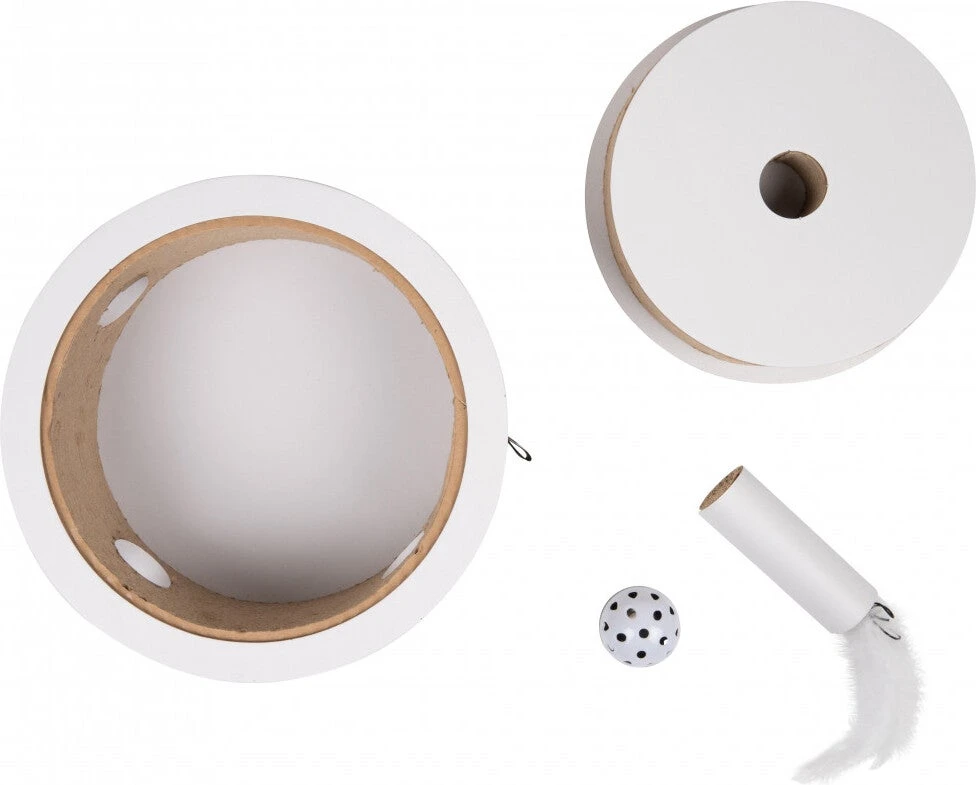 Hoe leuk is het om jouw kat te verrassen met dit kartonnen speelgoed in de vorm van een echte verjaardagstaart? De FIESTA maakt geluid en het is gemaakt van duurzaam golfkarton, kortom alle ingrediënten voor jouw kat om zich te vermaken. Dit stijlvolle kartonnen speelgoed kan eenvoudig in elkaar worden gezet en bestaat uit drie lagen. De onderste laag is hol en hierin rolt een balletje welke gevuld is met rinkelende belletjes waar jouw kat urenlang speelplezier aan zal beleven.
