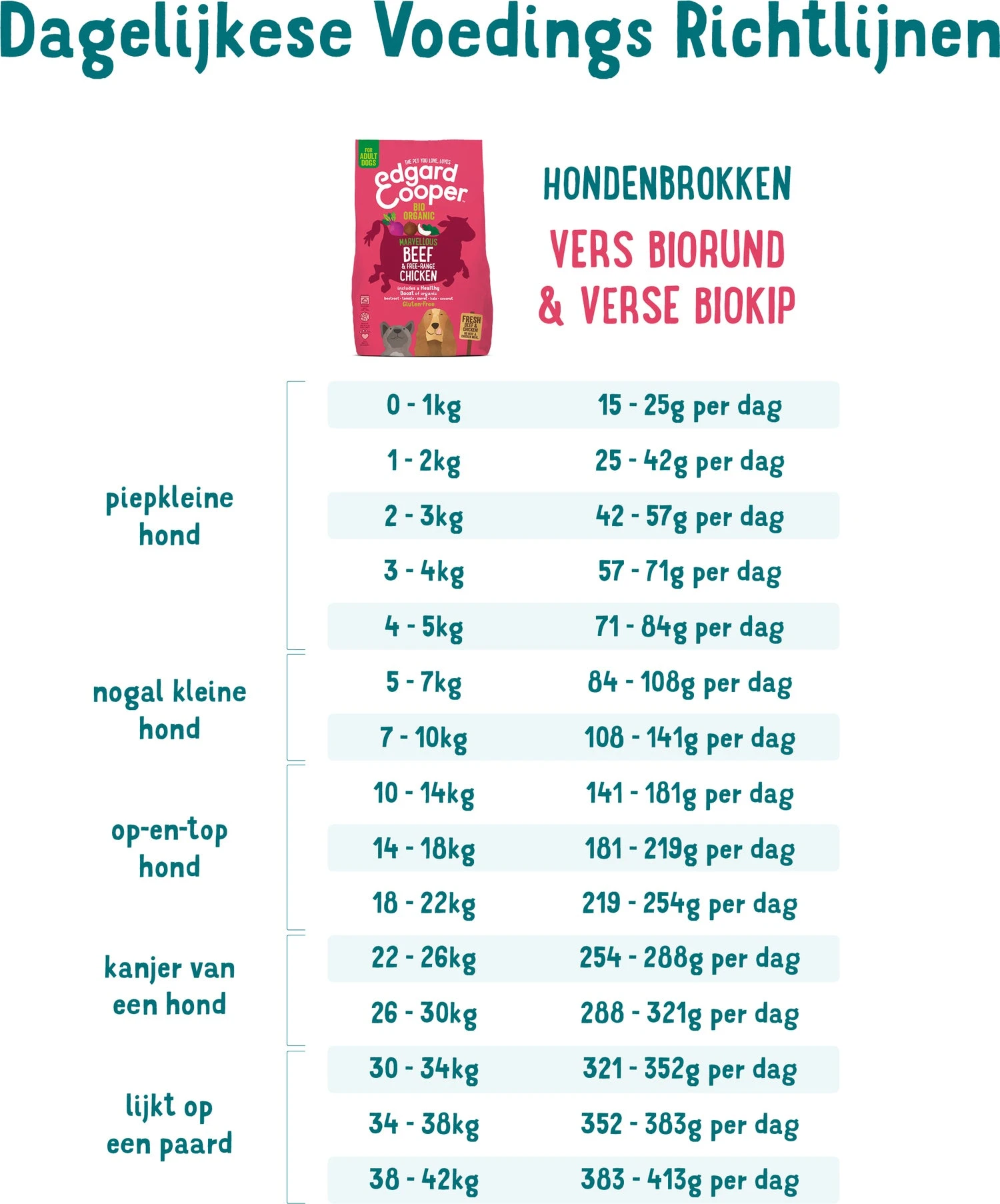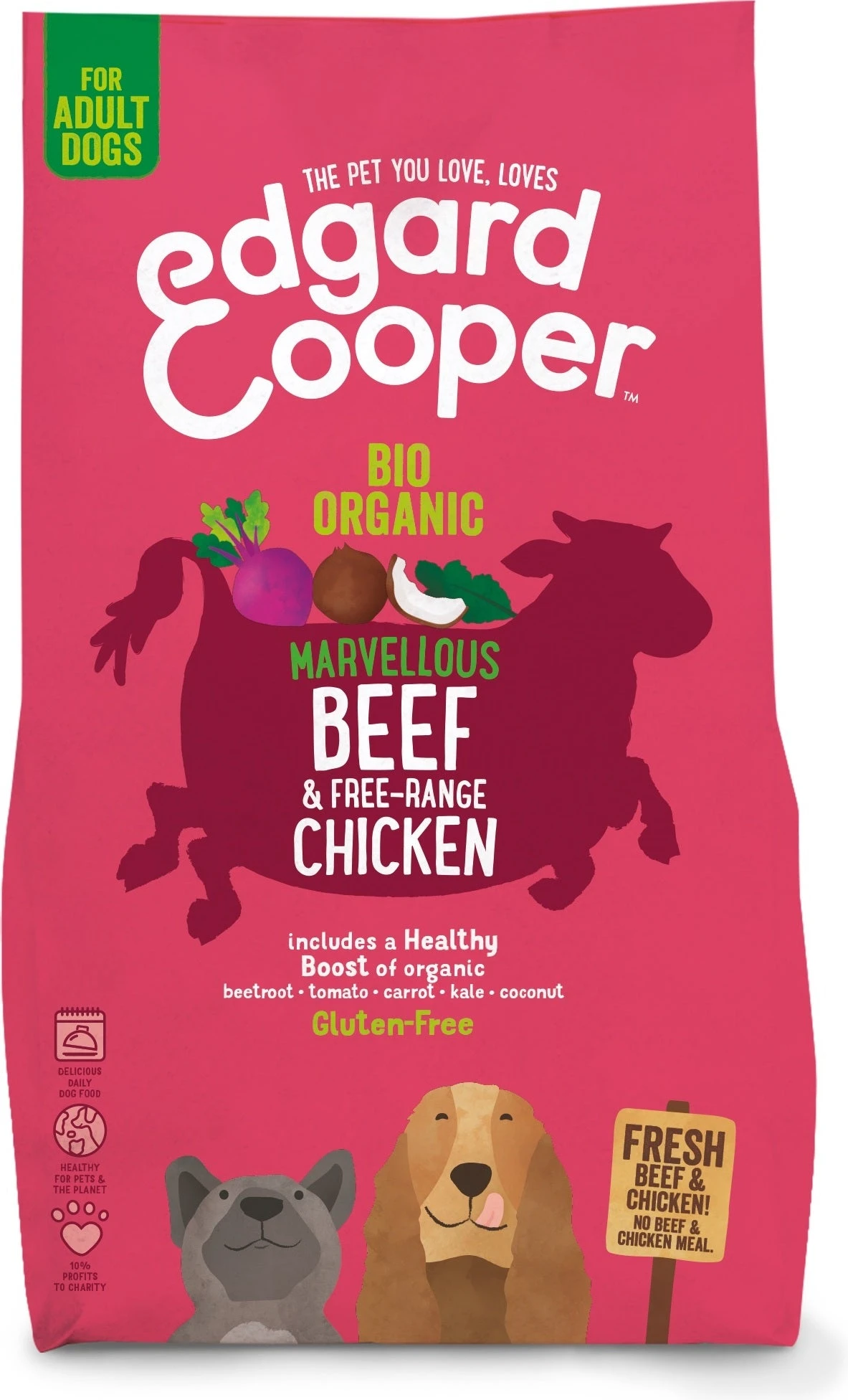 Dit hondenvoer van Edgard & Cooper en is speciaal ontwikkeld voor volwassen honden. Met de heerlijke smaak van biologische rund en kip.
