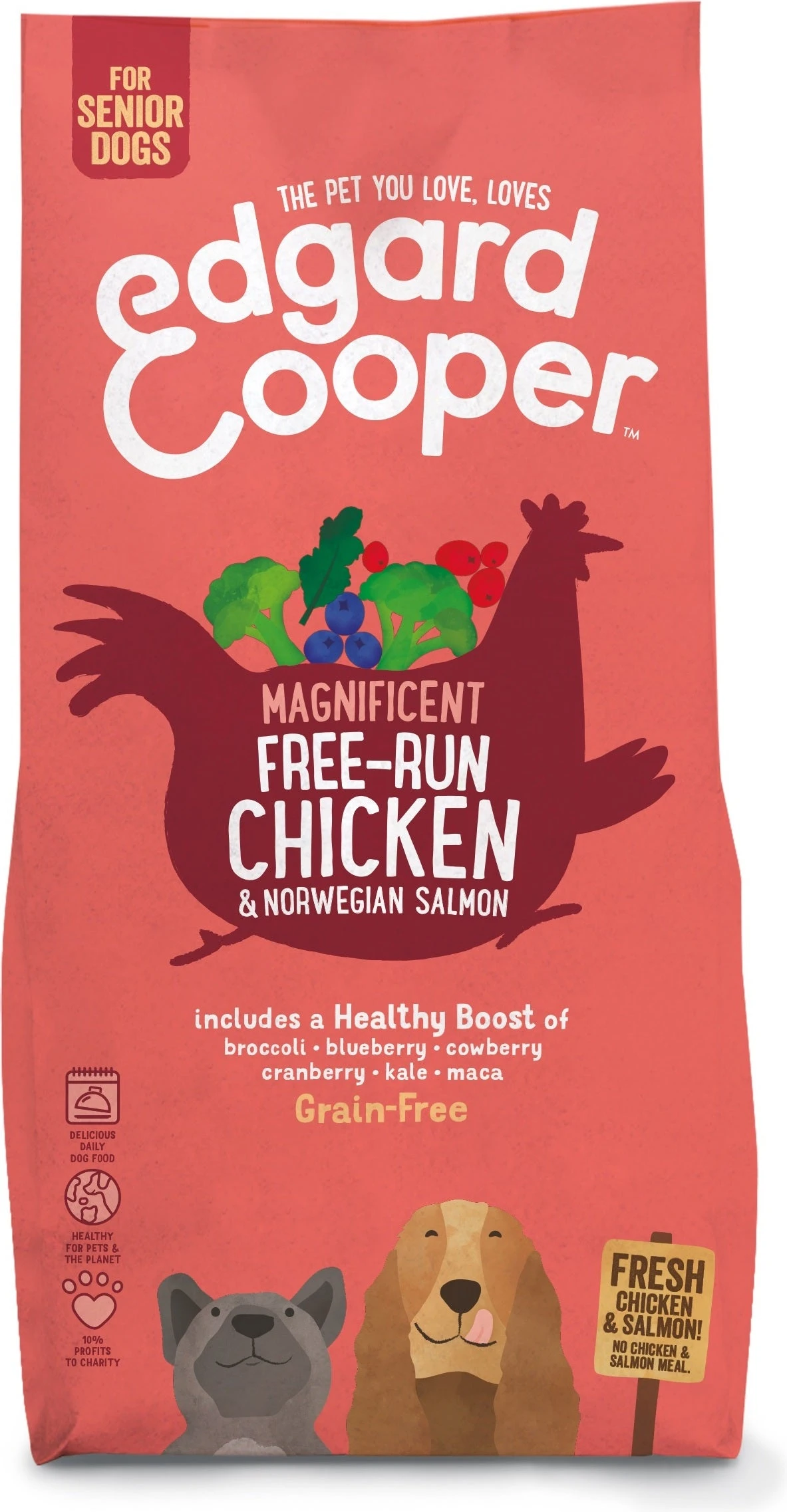 Dit hondenvoer van Edgard & Cooper en is speciaal ontwikkeld voor senior honden. Met de heerlijke smaak van verse scharrelkip en Noorse zalm.