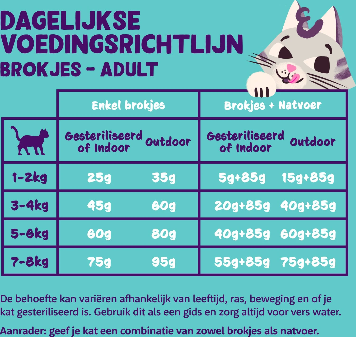| Extra informatie | Check de richtlijnen op onze verpakking, en meet de dagelijkse portie voor jouw kat af. Zo ben je zeker dat poeslief zich niet overeet. Want hoe zou je zelf zijn met zo'n lekkere recepten? |