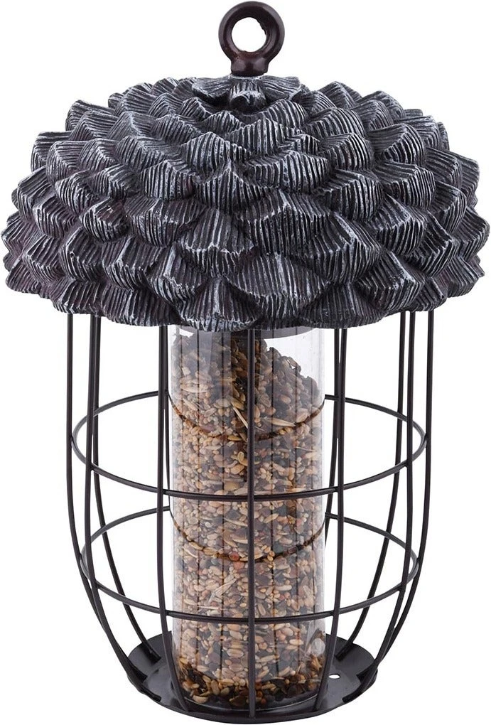 Dit vogelvoederhuis van Esschert Design heeft de vorm van een eikel en beschermt het voer tegen eekhoorns en weersinvloeden. Deze vrolijke silo doseert het voer en is gemakkelijk te vullen door de ophangring los te draaien en de deksel op te tillen.