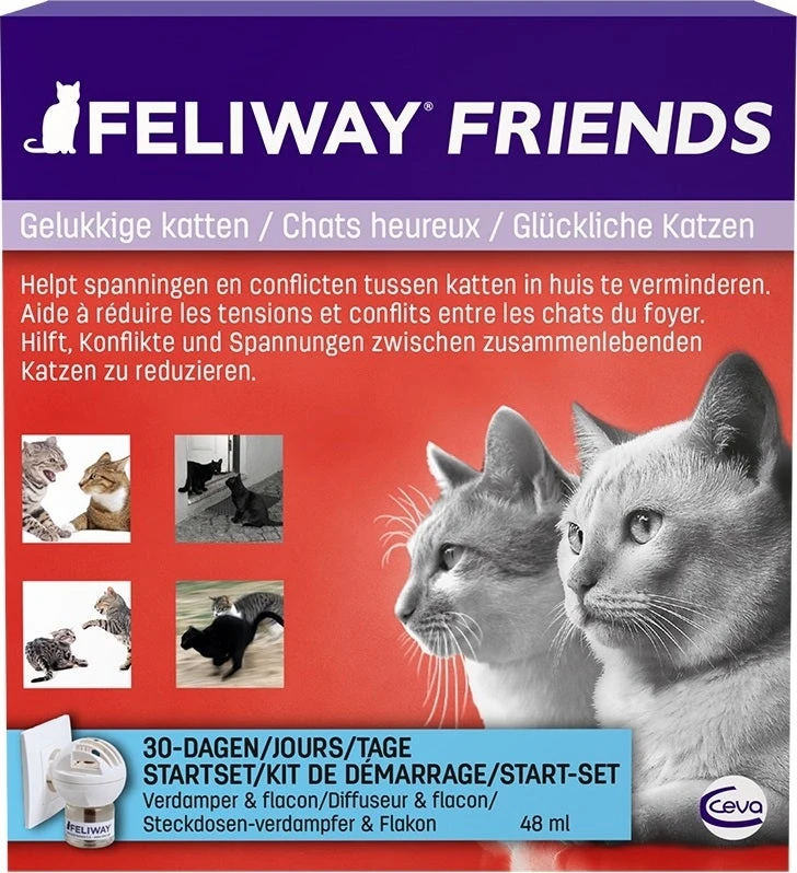 Feliway Friends is een kopie van het geruststellende feromoon (C.A.P.) dat moederpoezen produceren tijdens de lactatie om een band te creëren tussen haar en de kittens. Katten herkennen dit feromoon gedurende hun hele leven, waardoor het op latere leeftijd ook nog een kalmerend effect zal hebben. Ook als katten uit verschillende nestjes komen.