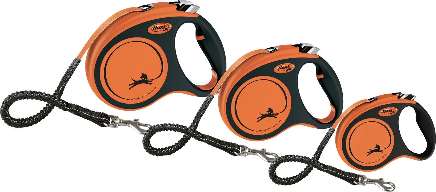 De Xtreme serie van flexi is een hightech rollijn. Hij is gemaakt met bijzonder slijtvaste materialen. Voor de tape is bij de flexi Xtreme extreem duurzaam garen gebruikt. In combinatie met het elastische softstop-element aan het uiteinde van de lijn reageert het robuuste eenhandsremsysteem niet alleen veilig en snel, maar wordt de hond ook veel zachter afgestopt. Bovendien is vanaf maat M een traploze maatinstelling in de softgrip geïntegreerd. Optioneel kan de Xtreme worden aangevuld met de flexi multi box en het LED lighting system. Verkrijgbaar in de kleurencombinatie oranje/zwart, de maten S (honden tot 20 kg), M (honden tot 35 kg) en L (honden tot 65 kg) zijn ongeveer 5 meter lang.