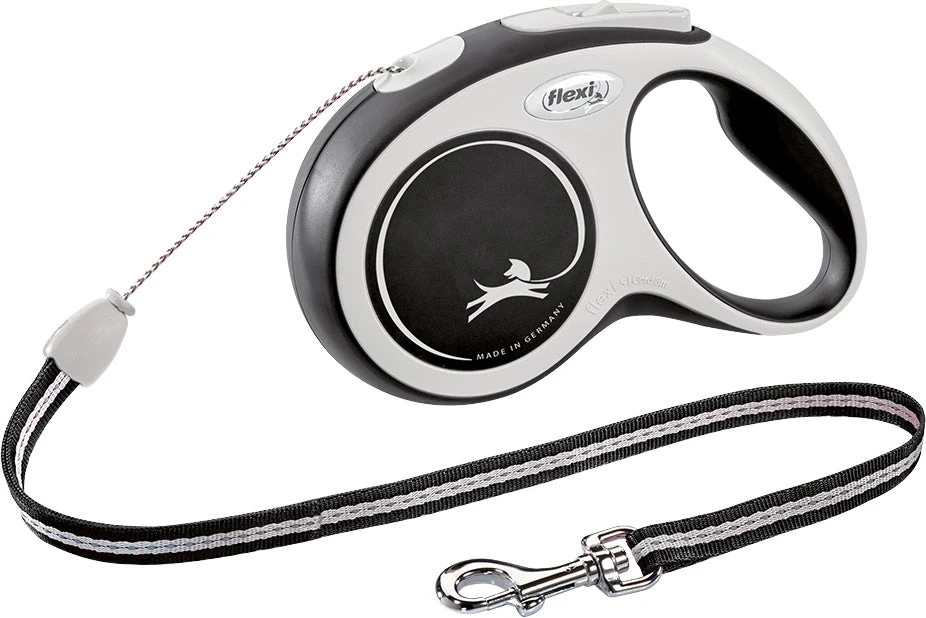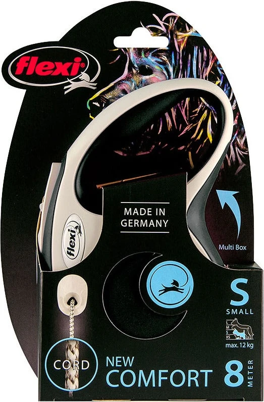 De rollijn New Comfort koord van Flexi is door het perfect afgestemde, tweekleurige design een echte blikvanger. De hondenriem heeft een maximale vrije looplengte van 8 meter en is geschikt voor kleine honden tot maximaal 12 kg.