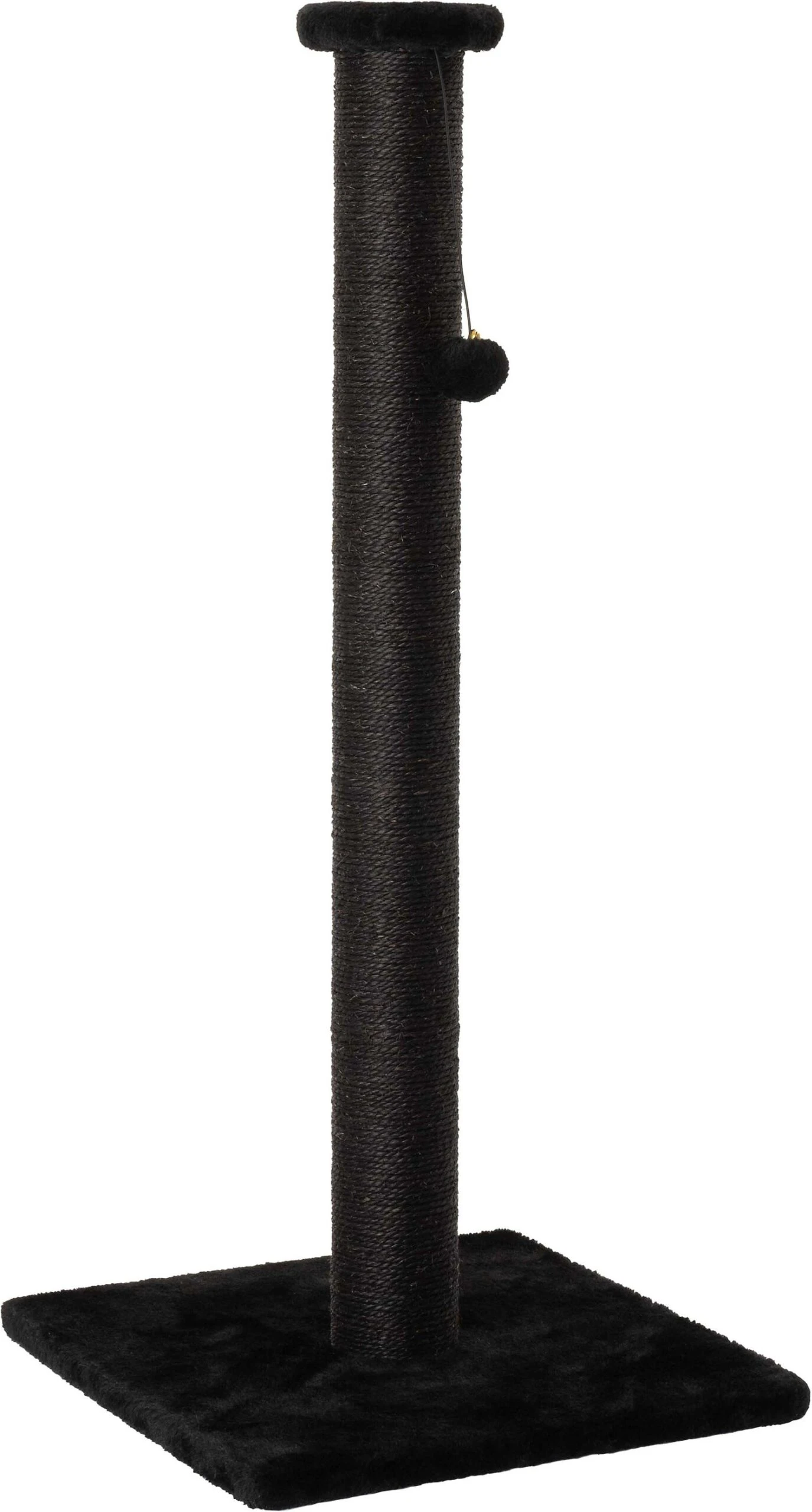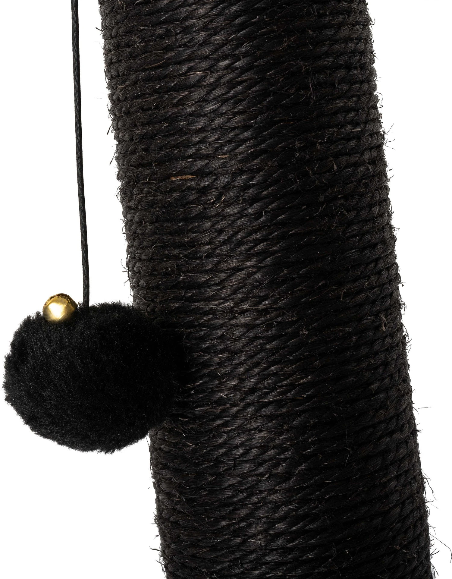 Een mooie afgewerkte krabpaal met een extra hoge sisalstam van 90 cm, inclusief een speeltje aan een elastiek. Katten vinden het prettig om zich uit te rekken wanneer ze aan de paal willen krabben, dus biedt deze extra hoge paal uitkomst. De krabpaal is gemaakt van hout en omwikkeld met 5 mm sisal in de kleur zwart.
