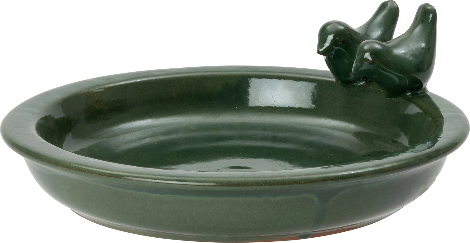 Deze vogel voeder- en drinkschaal van Intratuin is een mooie toevoeging voor in je tuin of op het terras. Vul de schaal met water en de vogels zullen niet lang op zich laten wachten. Zorg ervoor dat de schaal op een beschutte plek staat, zo voelen de vogels zich minder snel bedreigd. De voeder- en drinkschaal is versierd met twee vogeltjes en heeft de kleur donker groen.