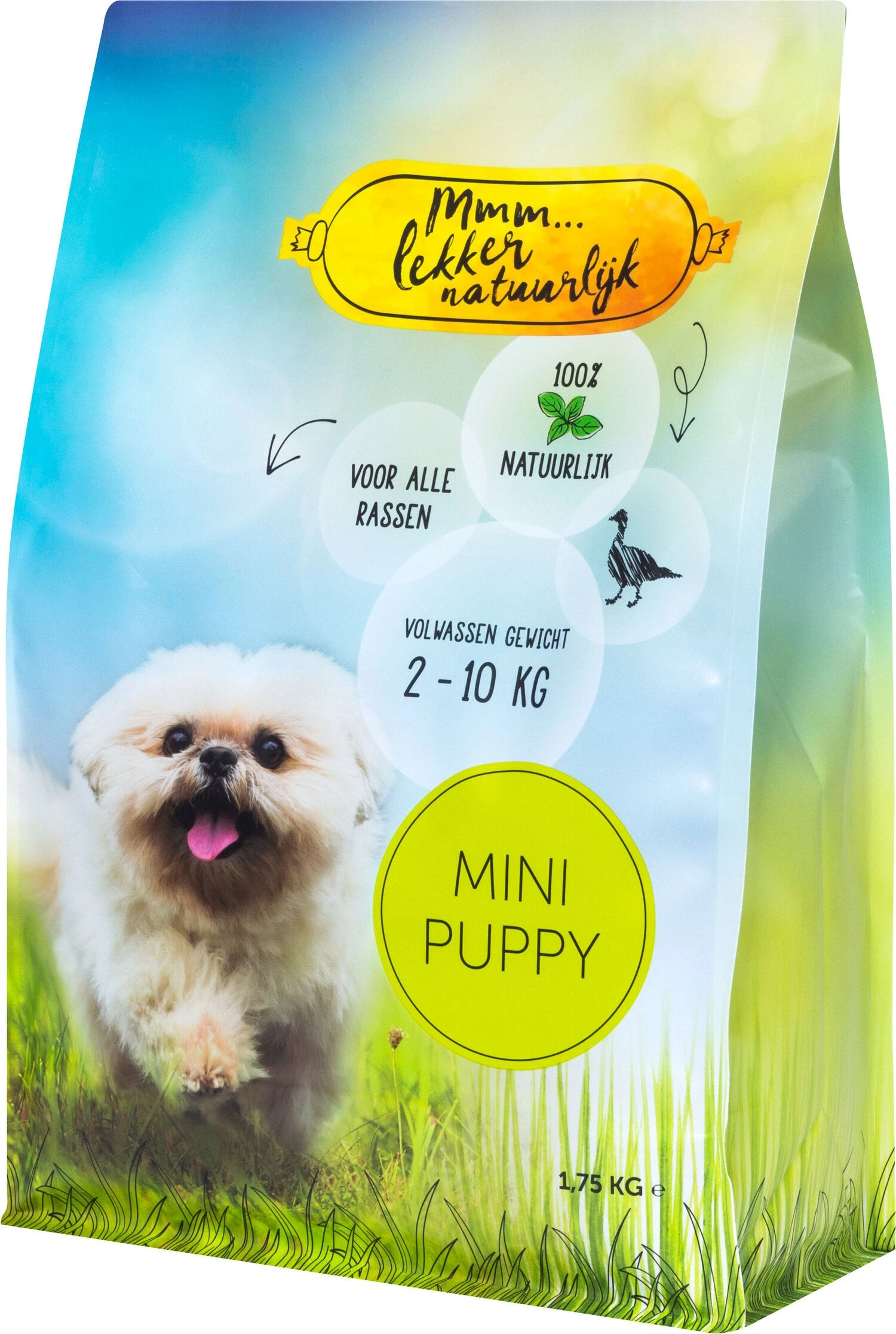 ‘Lekker Natuurlijk’ Mini Puppy is een volledig uitgebalanceerde premium voeding op basis van eend voor alle puppy’s van kleine rassen tot een volwassen eindgewicht van 10 kilo. ‘Lekker Natuurlijk’ Mini Puppy heeft een hoog eiwit- en vetgehalte en alle voedingsstoffen in de juiste verhouding voor een optimale groei van uw pup tot 12 maanden.