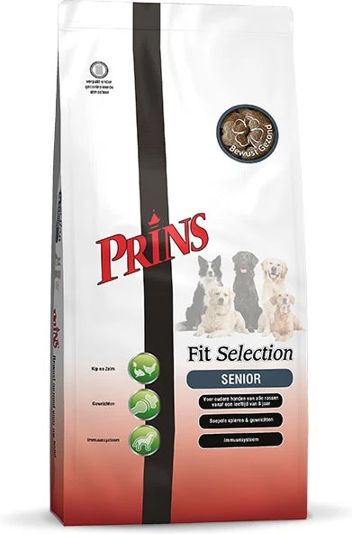 Fit Selection senior van Prins is een krokante voeding voor senior familiehonden van middelgrote en grote rassen vanaf ongeveer 8 jaar. Deze smakelijke volledige voeding stimuleert jouw hond om te kauwen en draagt bij aan een goede vertering en evenwichtige darmflora. Helpt jouw hond fit en gezond te houden!