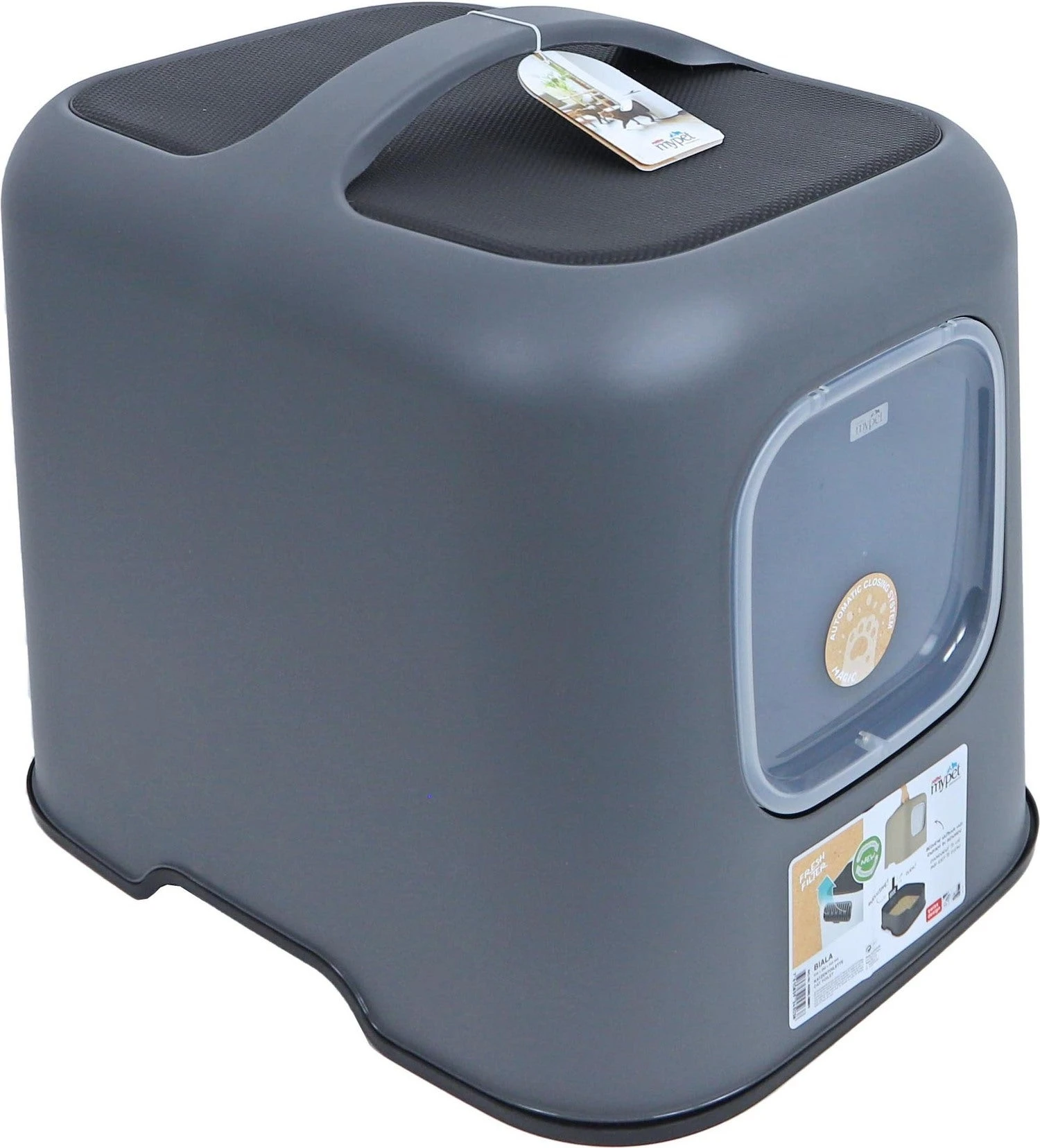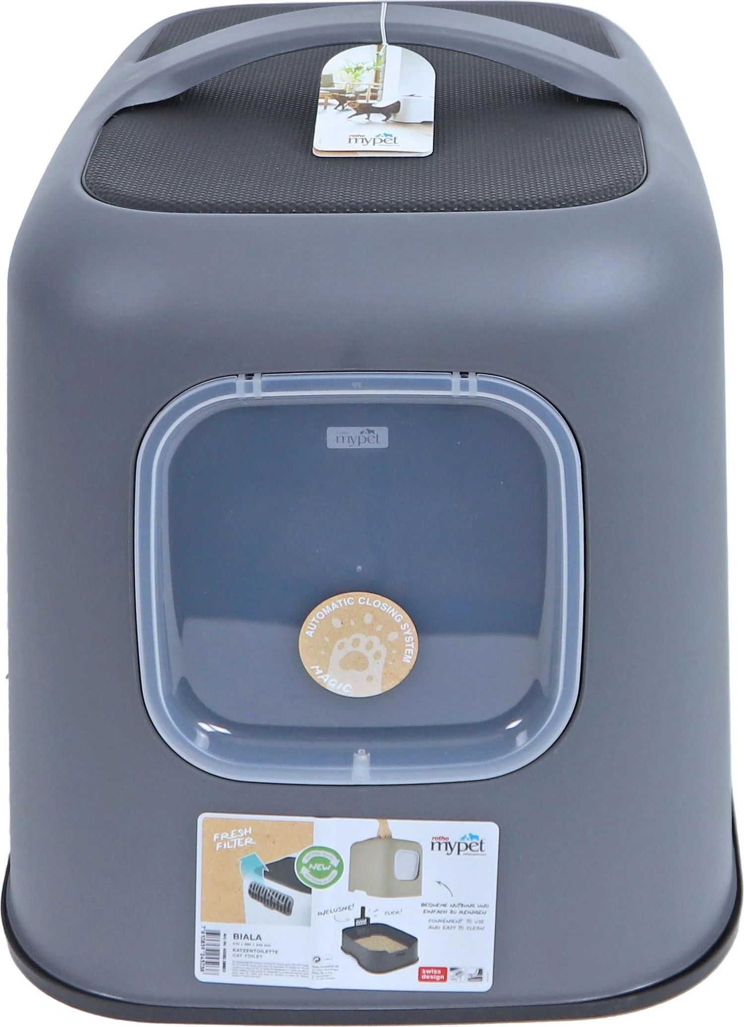 Het Rotho my pet kattentoilet Biala is een stijlvolle kattenbak die goed in te passen is in elk interieur, vanwege zijn moderne kleuren. Door de makkelijk afneembare bovenkap met handvat is het toilet ook zeer gemakkelijk te verschonen. De kap kan met een simpele handbeweging worden afgenomen en worden teruggeplaatst en er hoeven dus geen klemmen te worden vast of los geklikt.