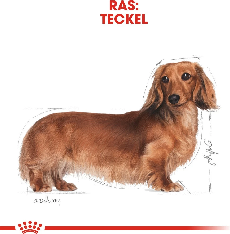 De Dashond (Teckel) is een vriendelijke, intelligente en loyale hond die bekend staat als de ideale familiehond. Omdat elk hondenras verschillende behoeftes heeft, is het belangrijk dat de hondenvoeding voedingsstoffen bevat die zijn gezondheid ondersteunen. Royal Canin Dachshund Adult is geschikt voor Dashonden (Teckels) vanaf een leeftijd van 10 maanden en is samengesteld met de voedingsbehoeften van een volwassen Dashond.