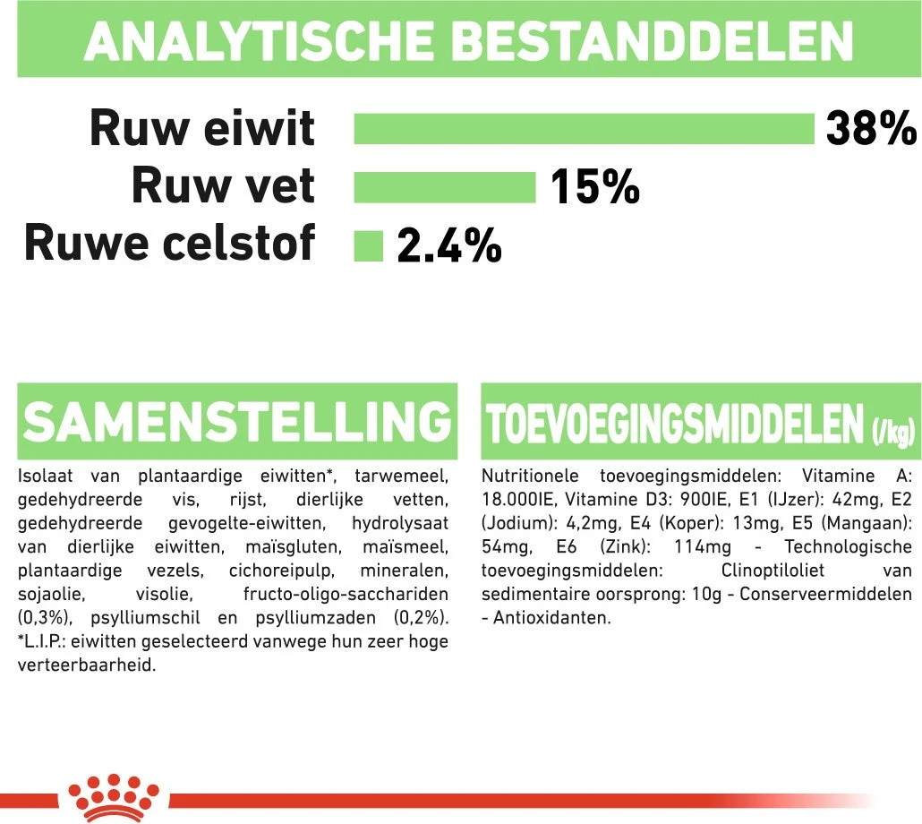 Royal Canin Digestive Care is bewezen effectief: na 10 dagen onafgebroken gebruik van deze voeding gedurende 10 dagen, vermindert de productie van ontlasting met 49%, dankzij de optimale voedingsstoffen en verteerbaarheid.