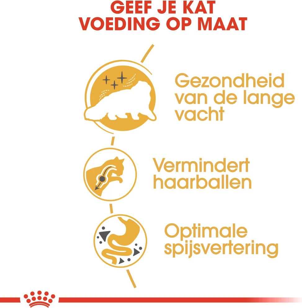 De voorouders van de hedendaagse Perzische kat werden zeer gewaardeerd in het oude Europa, zelfs door de Koningshuizen. Tegenwoordig wordt de Perzische kat door iedereen gewaardeerd vanwege haar nobele, zachte karakter en haar unieke volle vacht. De Perzische kat heeft een gemiddelde grootte, maar lijkt groter door de lange vacht en dikke ondervacht. Dagelijkse vachtverzorging, zoals kammen en ontklitten van de haren is onontbeerlijk. Voer tegelijkertijd Royal Canin Persian Adult voor het beste resultaat!
