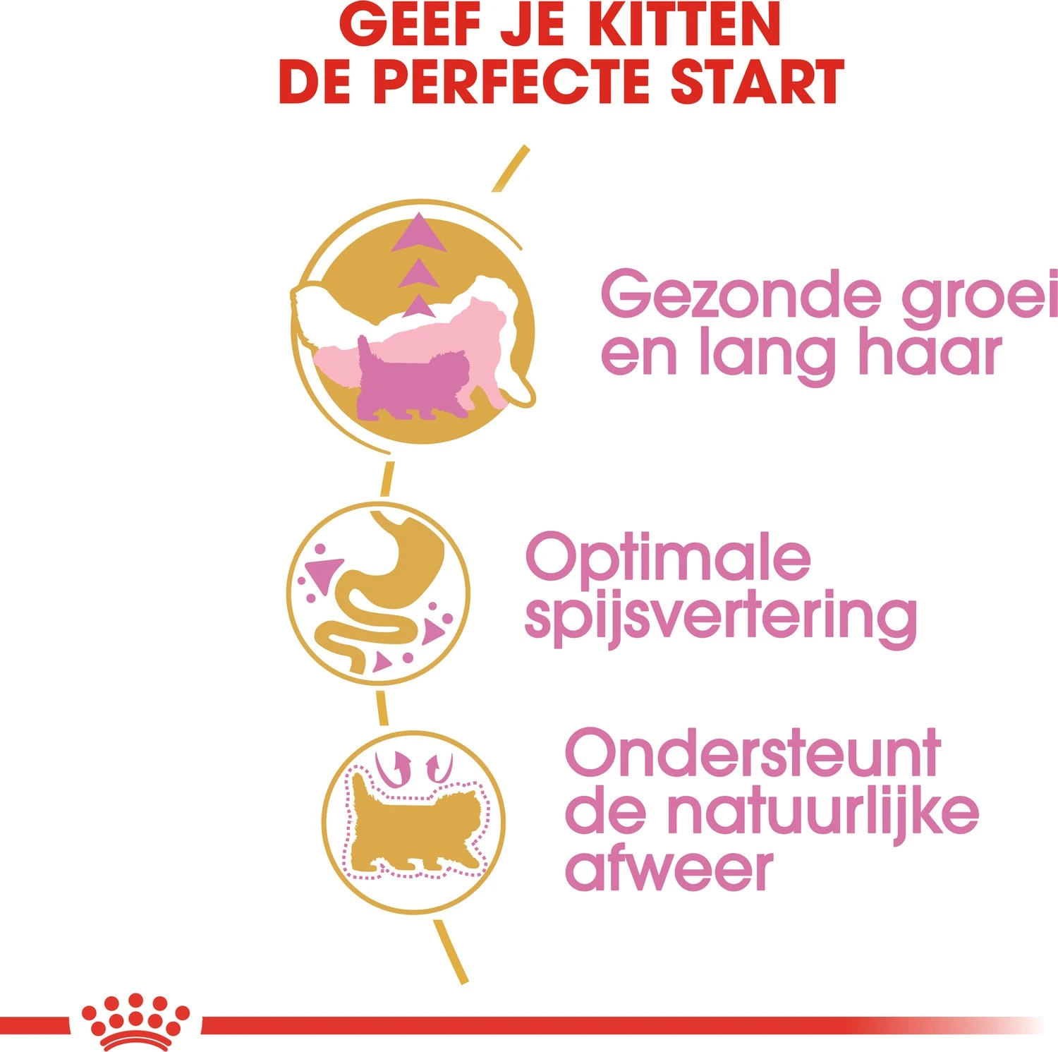 Bij Royal Canin zijn ze toegewijd aan het leveren van voedingsoplossingen voor de behoeften van je huisdier. Al hun producten ondergaan een uitgebreid kwaliteitscontroleproces om de optimale kwaliteit van de voeding te garanderen en om te voldoen aan de specifieke voedingsbehoeften en levensstijl van je kat. Als jouw kitten Royal Canin Persian Kitten eet, krijgt hij een complete en uitgebalanceerde voeding voorgeschoteld.