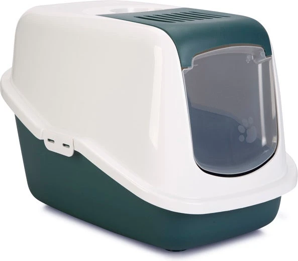 De kattenbak Nestor van Savic is een mooi vormgegeven kattenbak. Bij deze kattenbak is het niet nodig om de gehele bovenkap te verwijderen als je het kattentoilet wilt schoonmaken. Je kunt namelijk het deurtje en het binnenste gedeelte van de bovenzijde in een handomdraai los maken om deze schoon te maken. Het los geklikte gedeelte kun je omhoog duwen, zodat je er gemakkelijker bij kunt.