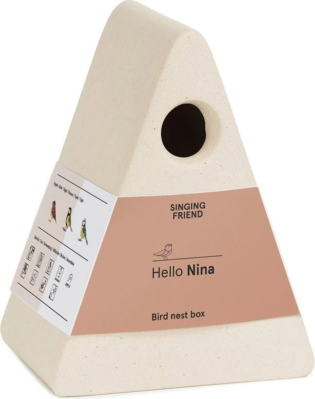 Nina is een elegante nestkast voor jou om te zien, en creëert voor je zingende vrienden een veilig plek in je tuin of op je balkon. Een plek waar ze maar al te graag naartoe komen om te nestelen, of om veilig in te kunnen slapen. Hang haar gemakkelijk op met een schroef in de muur of boom en geniet.