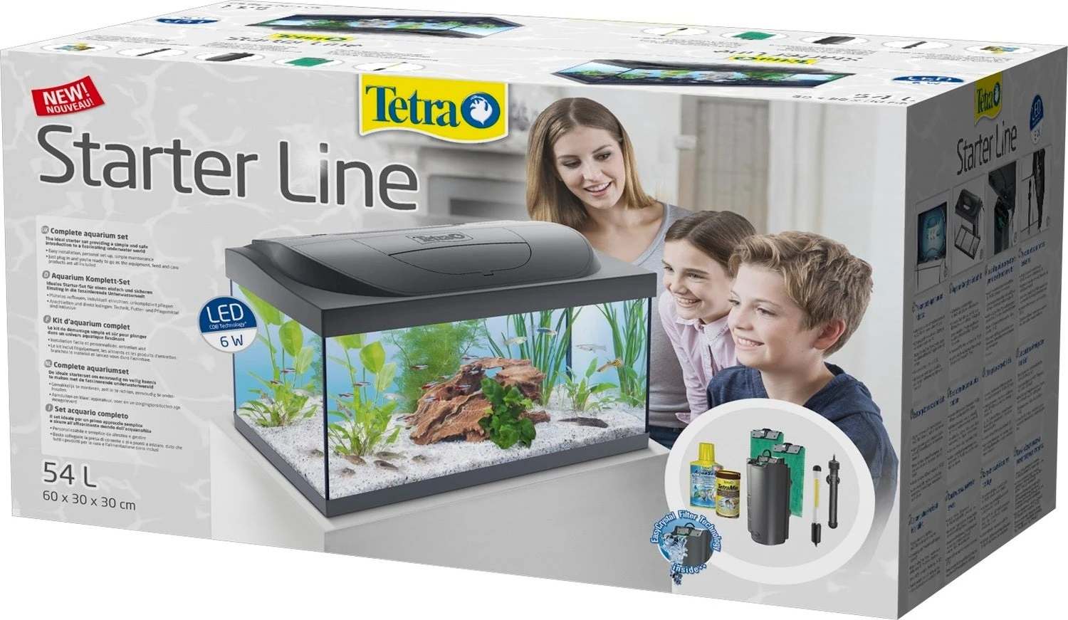 Met het Tetra aquarium Starter Line LED zijn de eerste stappen in de aquaristiek gemakkelijk. Dit aquarium is de ideale startset, omdat het eenvoudig te gebruiken is en betrouwbare apparatuur bevat. Het stevige aquarium van 54 liter wordt geleverd met LED-verlichting van 6 watt, een gemakkelijk te reinigen filter, een betrouwbare verwarmer, premiumvoer en verzorgingsproducten.